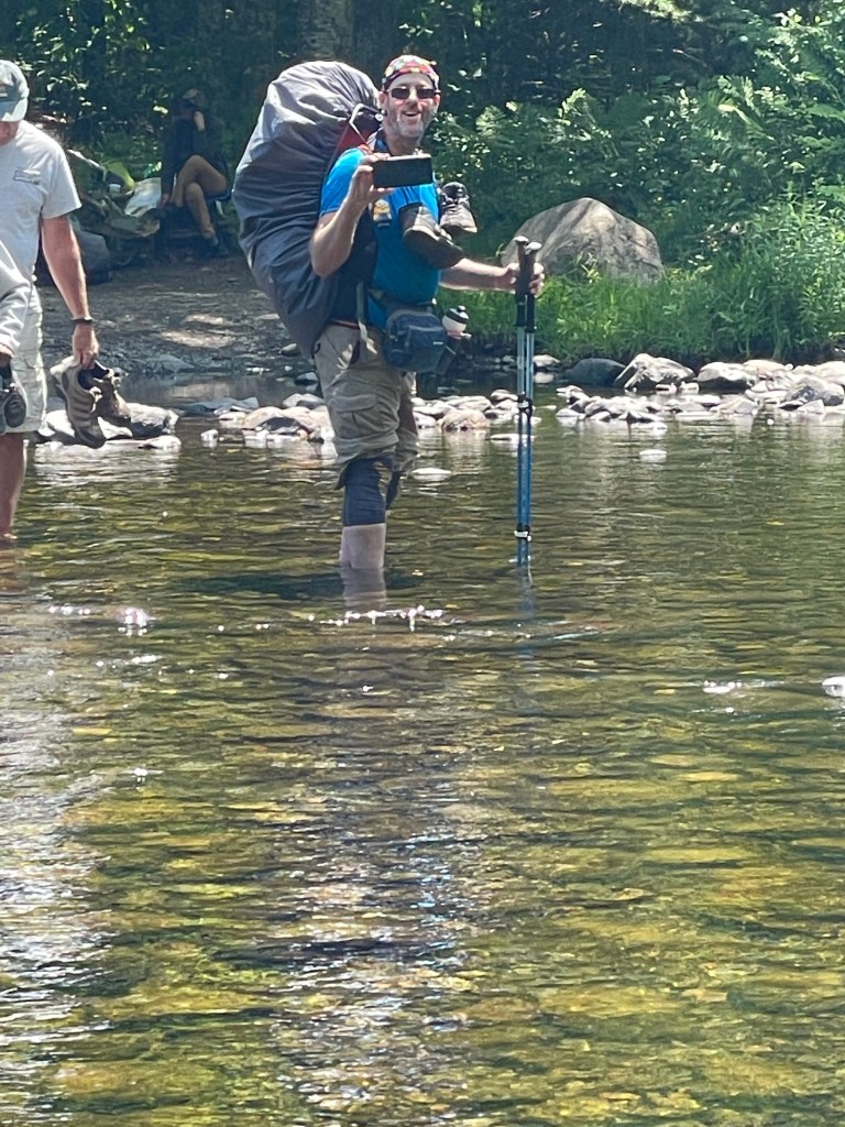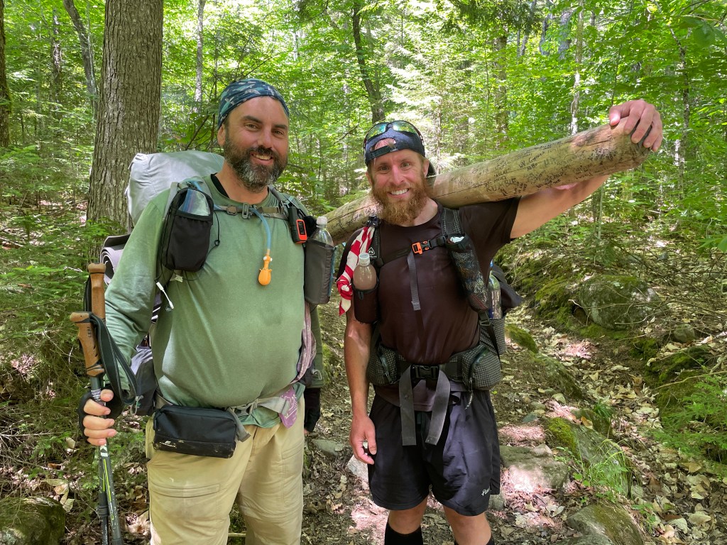 Another highlight was meeting Larry the Log, who carried a log on his shoulder for his hike from Georgia and who summited a few days later. He carried the log to raise awareness for Veteran’s issues and had vets he met sign the log.